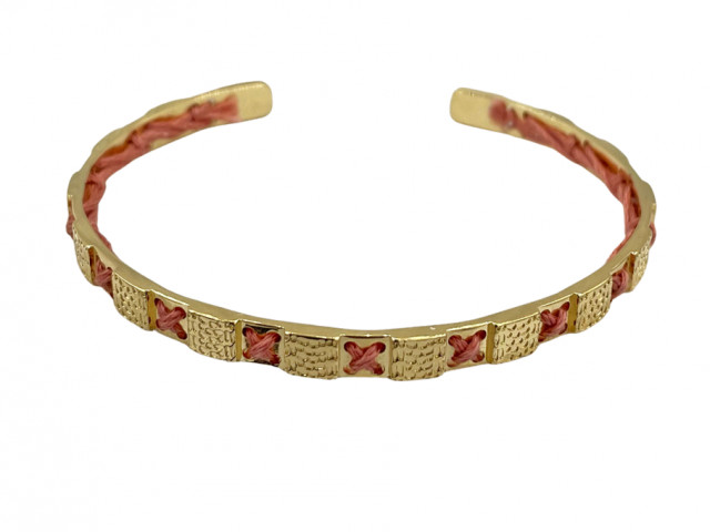 Fin bracelet alternant plusieurs textures ainsi qu'une broderie en croix d'un fil de coton rose blush.